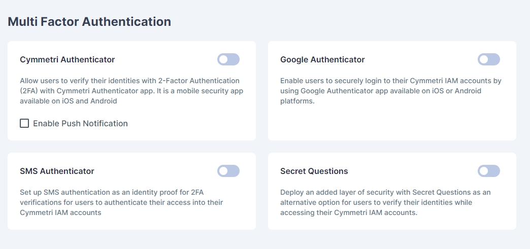 All subsequent logins of any user on the Cymmetri Identity platform will now require the use of the Push Authenticator mechanism.