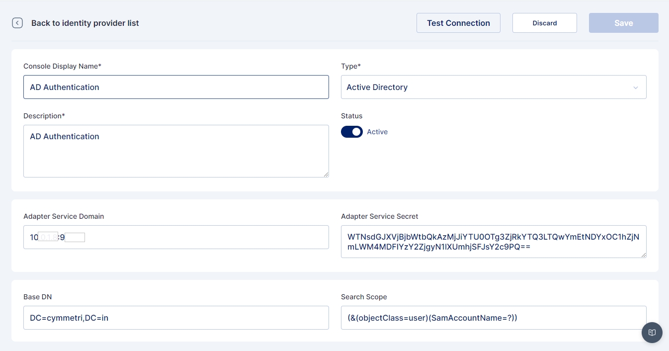 The Adapter Service or Auth Adapter Service is exposed as a rest service which runs on https acts as an adapter to facilitate authentication using the LDAP protocol which is often employed for authentication purposes in various systems and every adapter service instance is called by the secret generated while installation/configuration of adapter service.