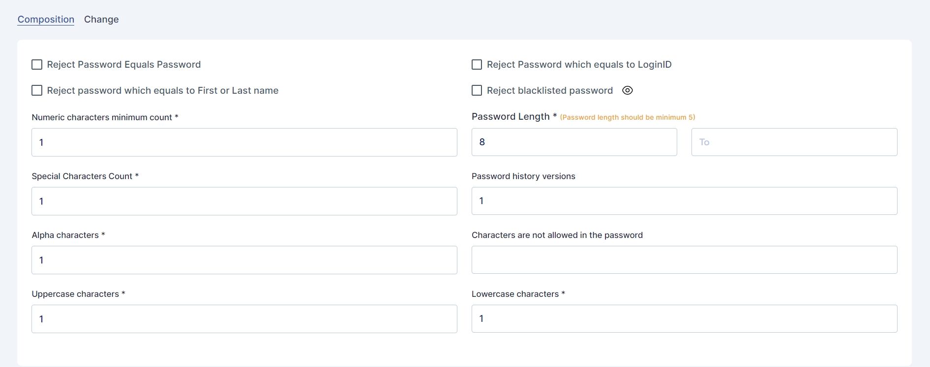 In Cymmetri, only the admin can create a password policy bby navigating to the authentication section and then in password policy.