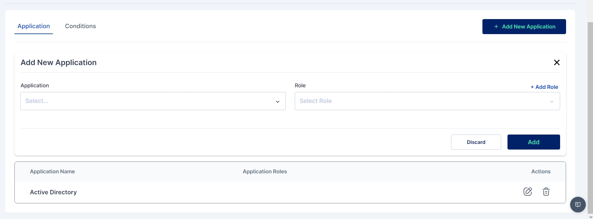 The initial step involves defining the rule by specifying the application and the corresponding roles that will activate the rule.