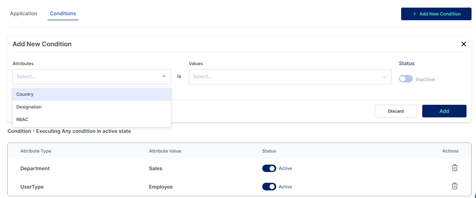 Note: Only the active conditions will be executed for the rule to trigger while provisioning.