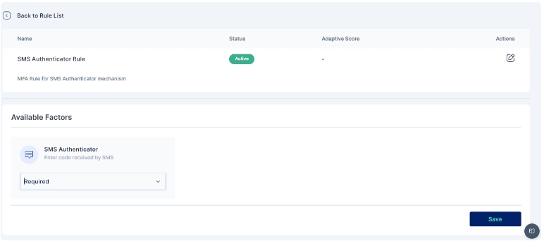 Once you have either created a new rule or edited an existing one, change the dropdown of the SMS Authenticator factor to indicate that it is mandatory (required).