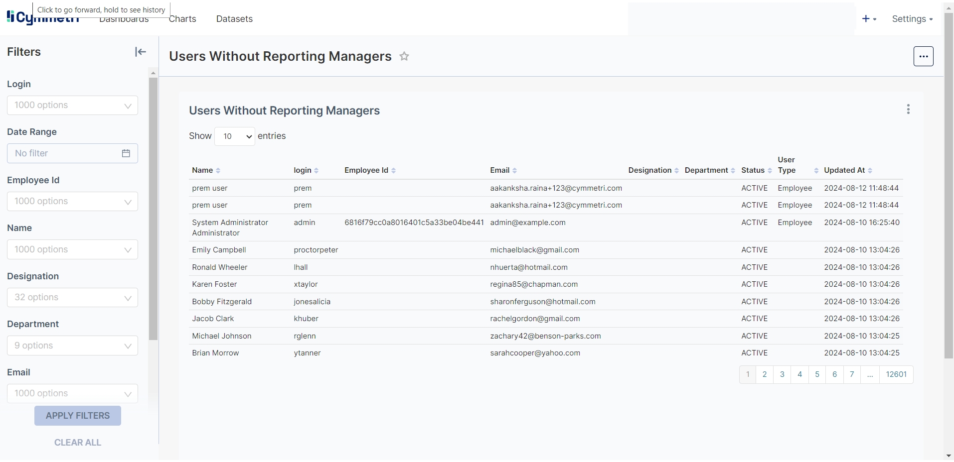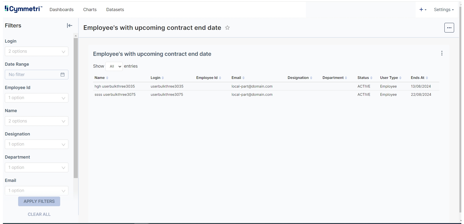 Cymmetri Users Report with End Date as Today