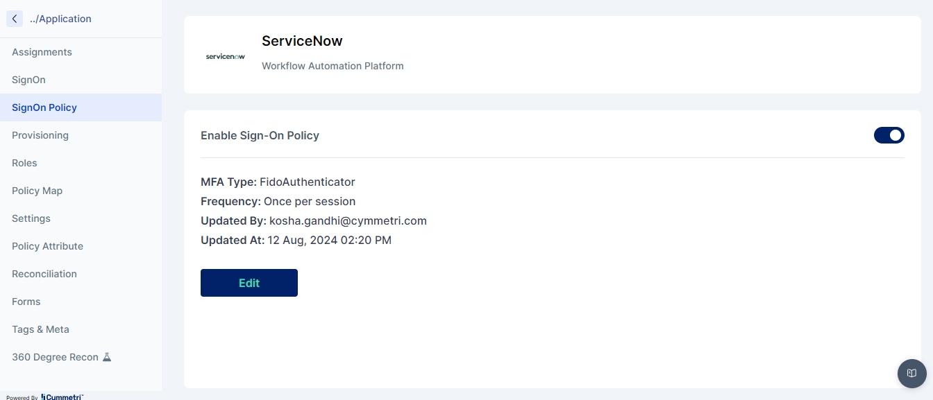 The Application Detail Page provides comprehensive management features for applications within the system. It includes various sub-pages for configuring assignments, sign-on protocols, policies, provisioning settings, roles, and more. Below we outline the functionalities and configurations available on each sub-page.