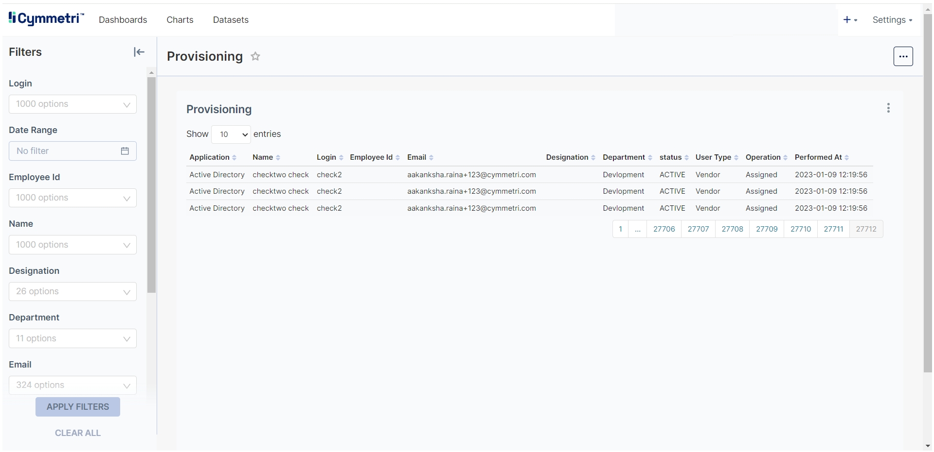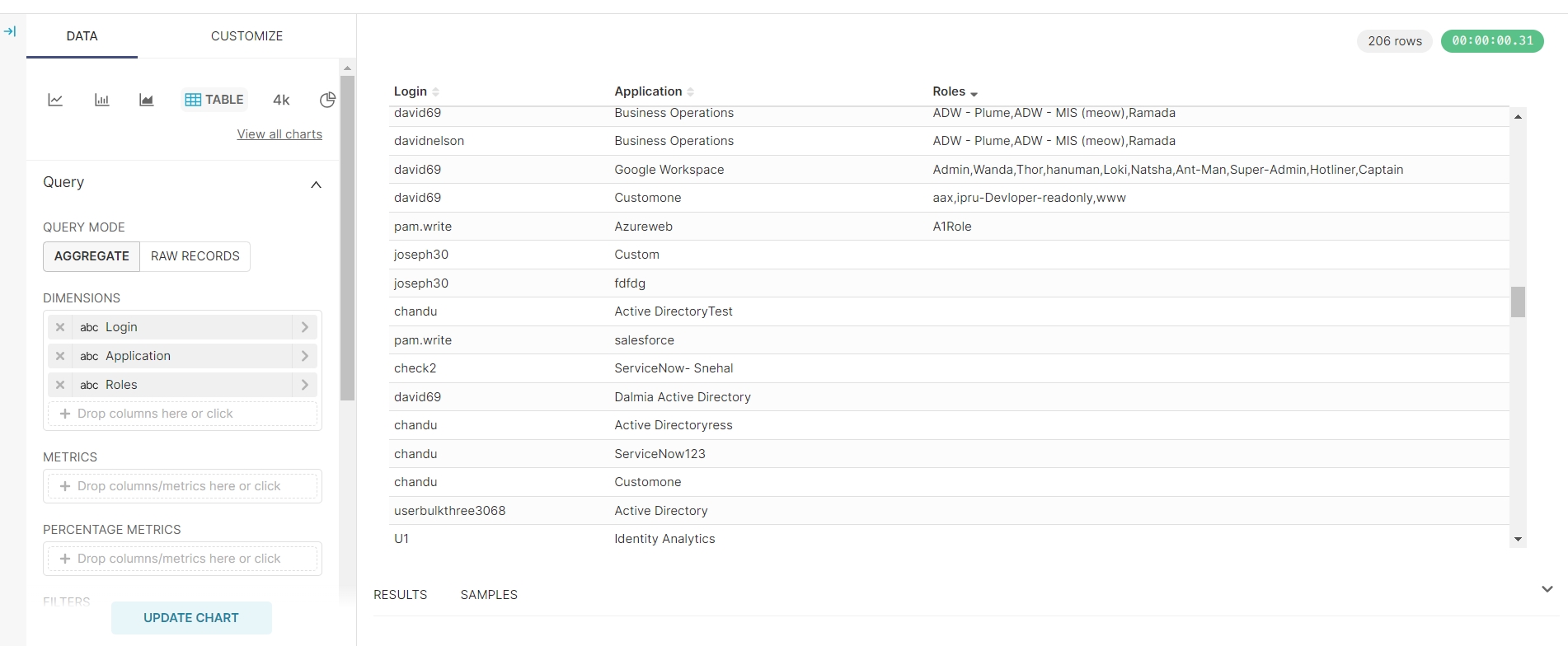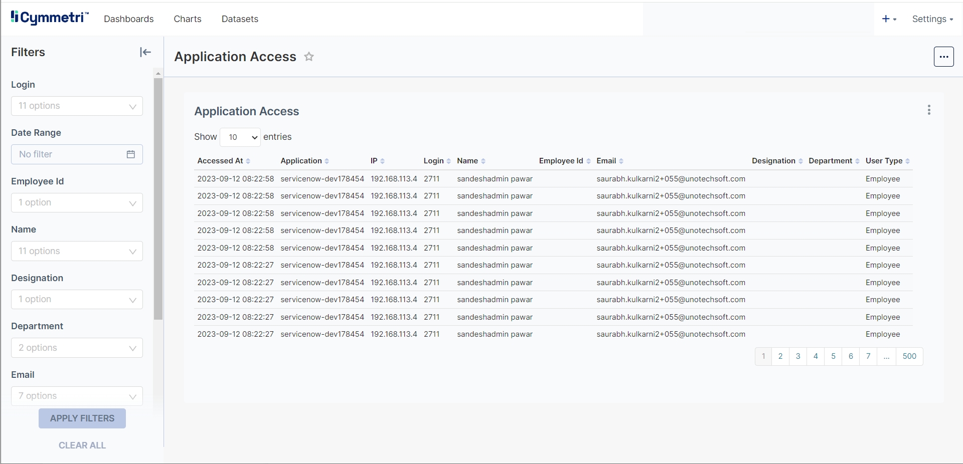 Cymmetri Identity Analytics is a comprehensive platform designed for identity and access management reporting. It is a component of Cymmetri's identity and access management (IAM) solutions that focuses on providing insights and analysis related to user identities, access patterns, groups, applications, other entitlements and security. It provides both out-of-the-box reports and the ability for end users to create custom reports and dashboards.