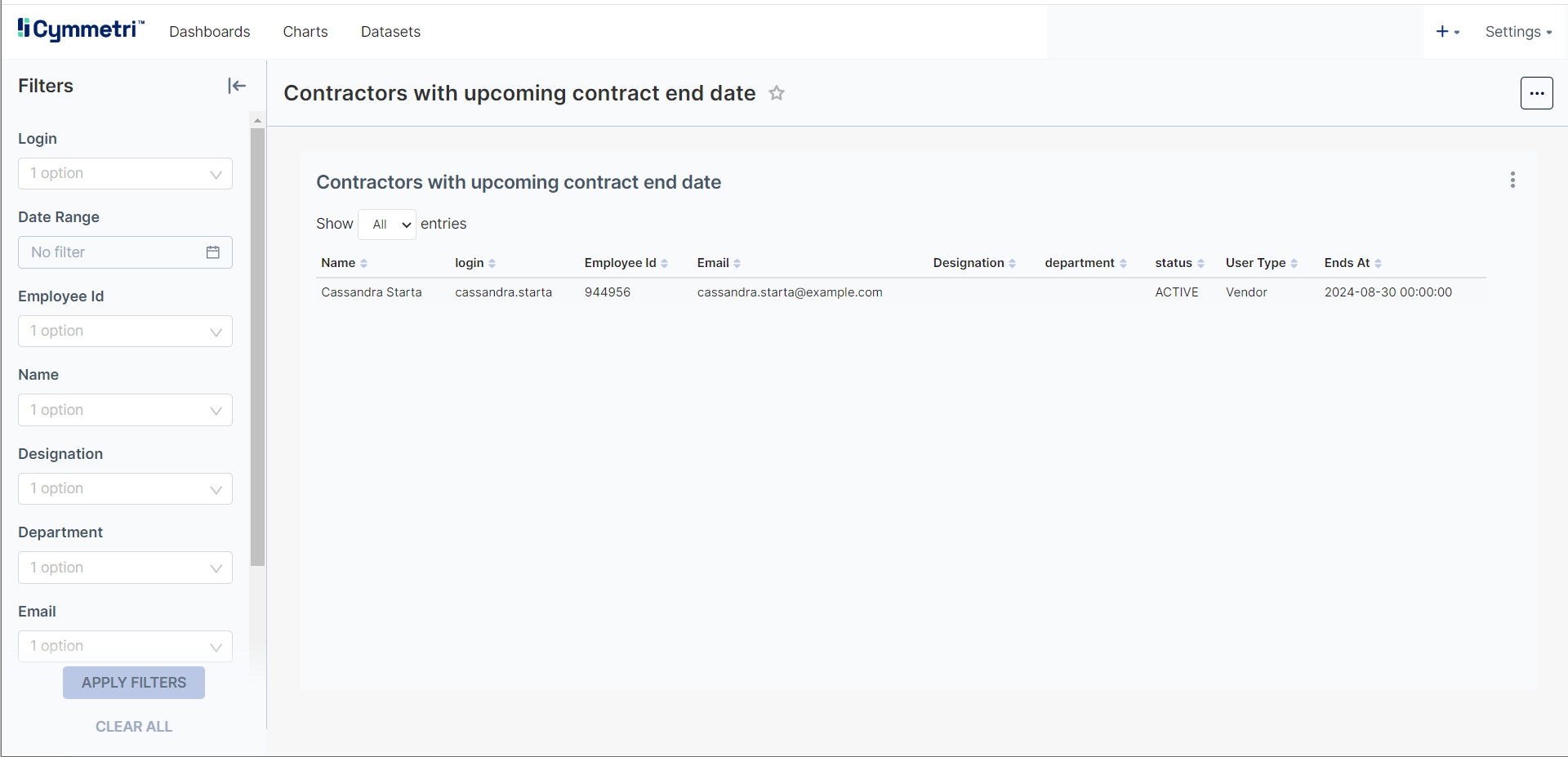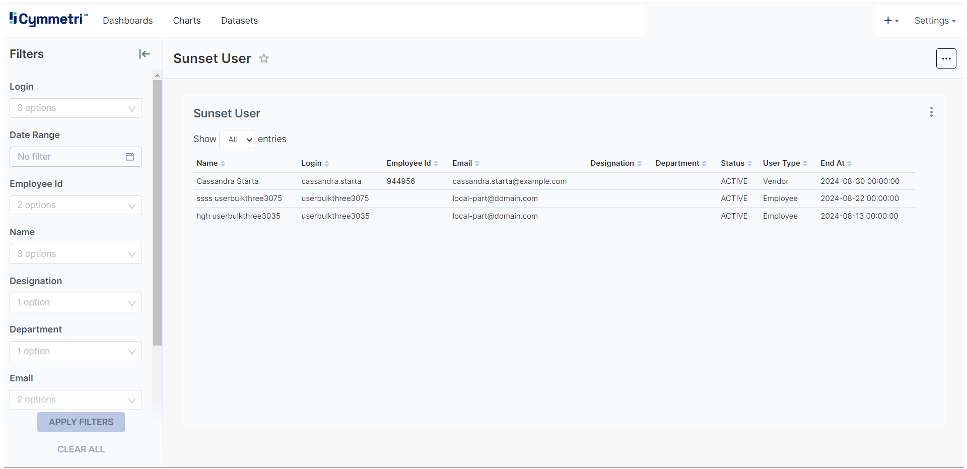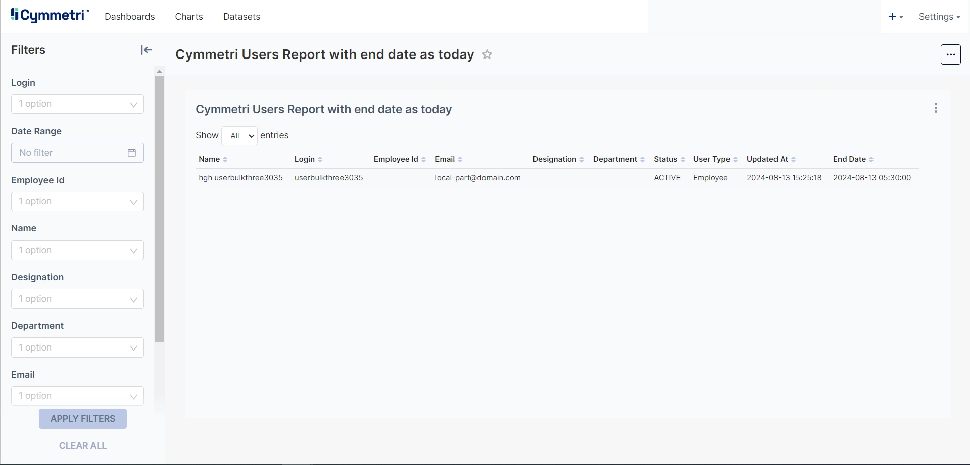 Highlights users whose end date is set for today. This report helps in managing user transitions and expirations, and identification of users who are going to be deprovisioned today.