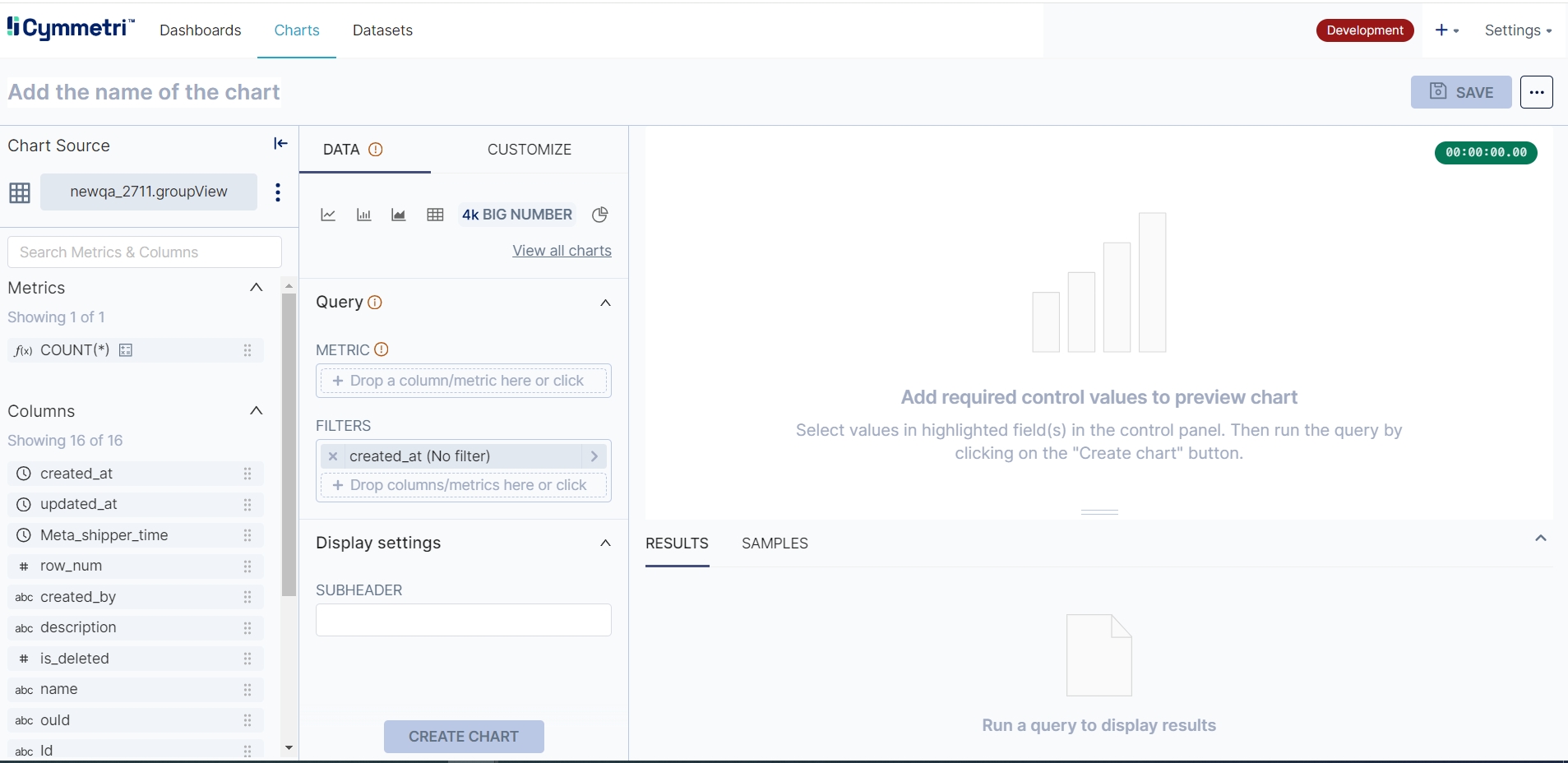 The user needs to provide a unique chart name and need to select the dashboard to which the chart needs to be added.
