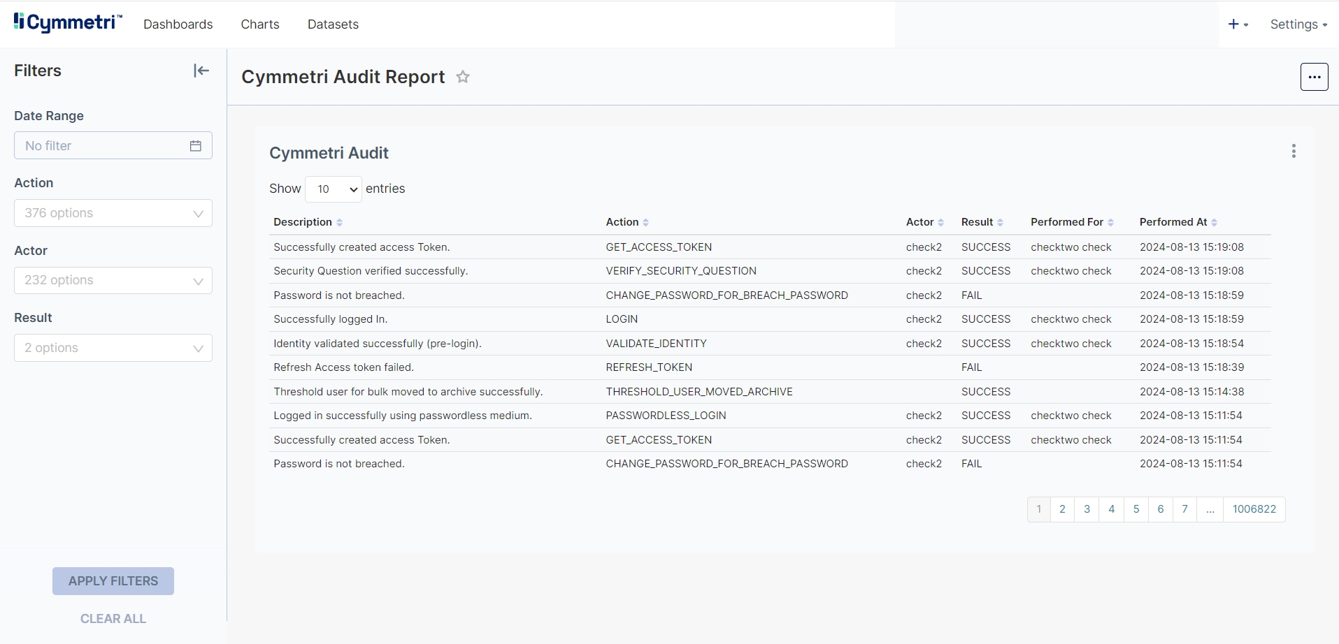 Contains audit logs and activities related to Cymmetri. This report is essential for compliance and security audits.