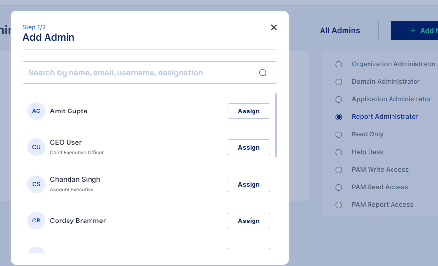 Follow the steps mentioned below to promote a user as an admin in the Cymmetri platform.
