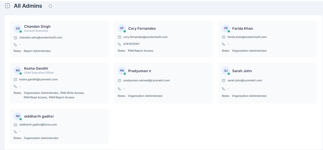 All admins is a section where various Cymmetri admins are displayed to the admin user&#x20;