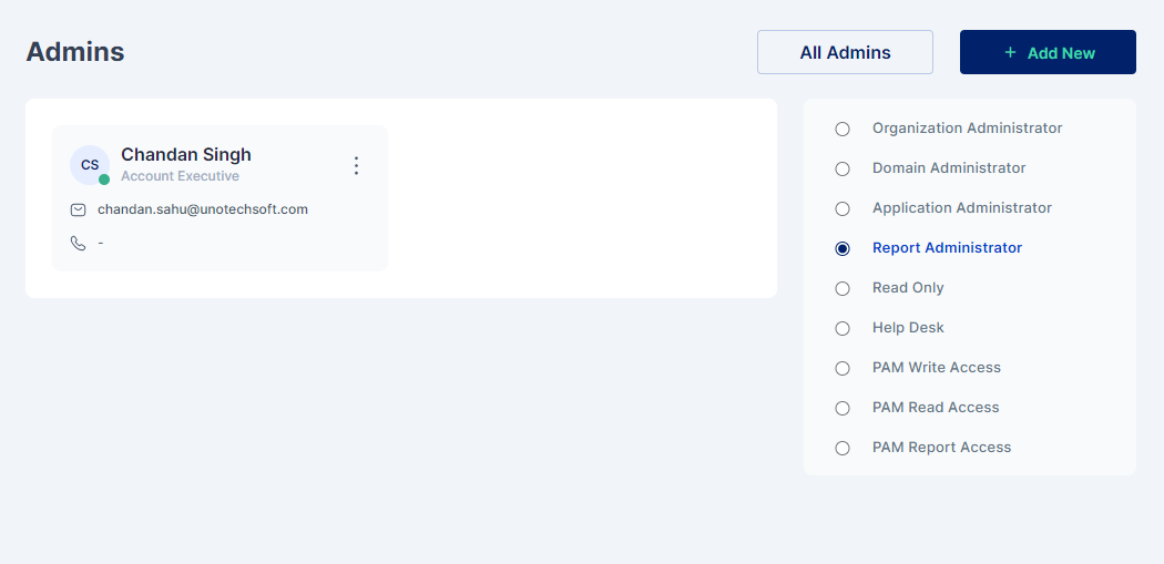 PAM Report Access is designed for users who require access to PAM-related reports without the need to connect to servers via RDP or SSH directly. Users with PAM Report Access can generate and access reports that provide insights into server activities, access logs, or other relevant data within Cymmetri. Such users can also configure schedulers to send timely reports to various other users. This level of access is beneficial for auditors, compliance teams, or individuals focused on analyzing server-related information for reporting and auditing purposes.
