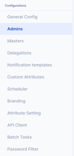 Now, click on the Admins sub-menu within the Configuration menu