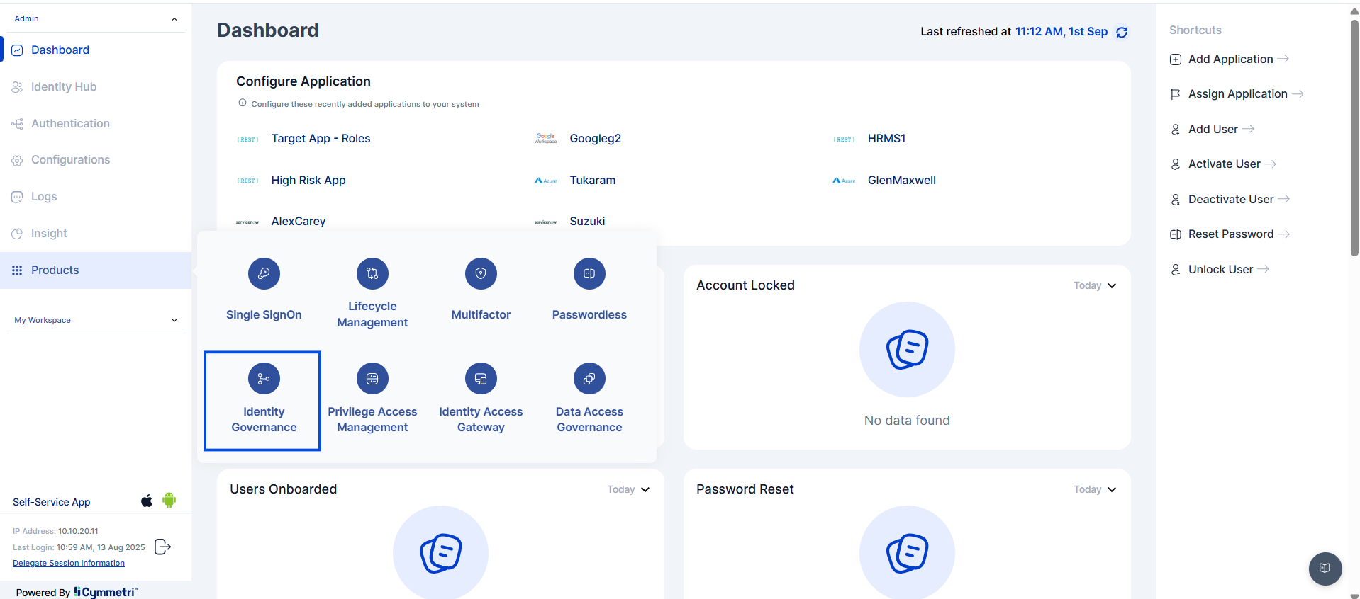 Navigate to Identity Governance (IGA): Access the main IGA module from the Cymmetri