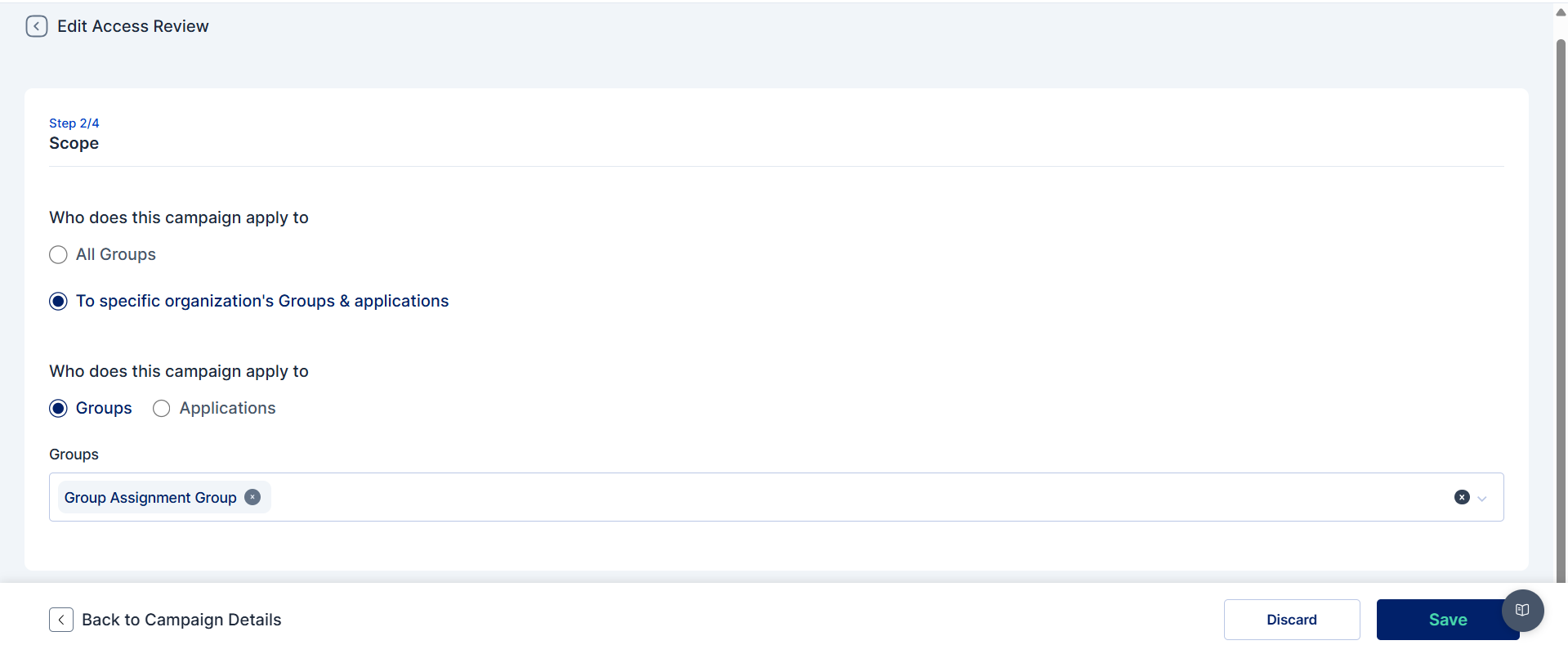 Go to Campaign: Navigate to the Campaign section within the Group Access Review interface.