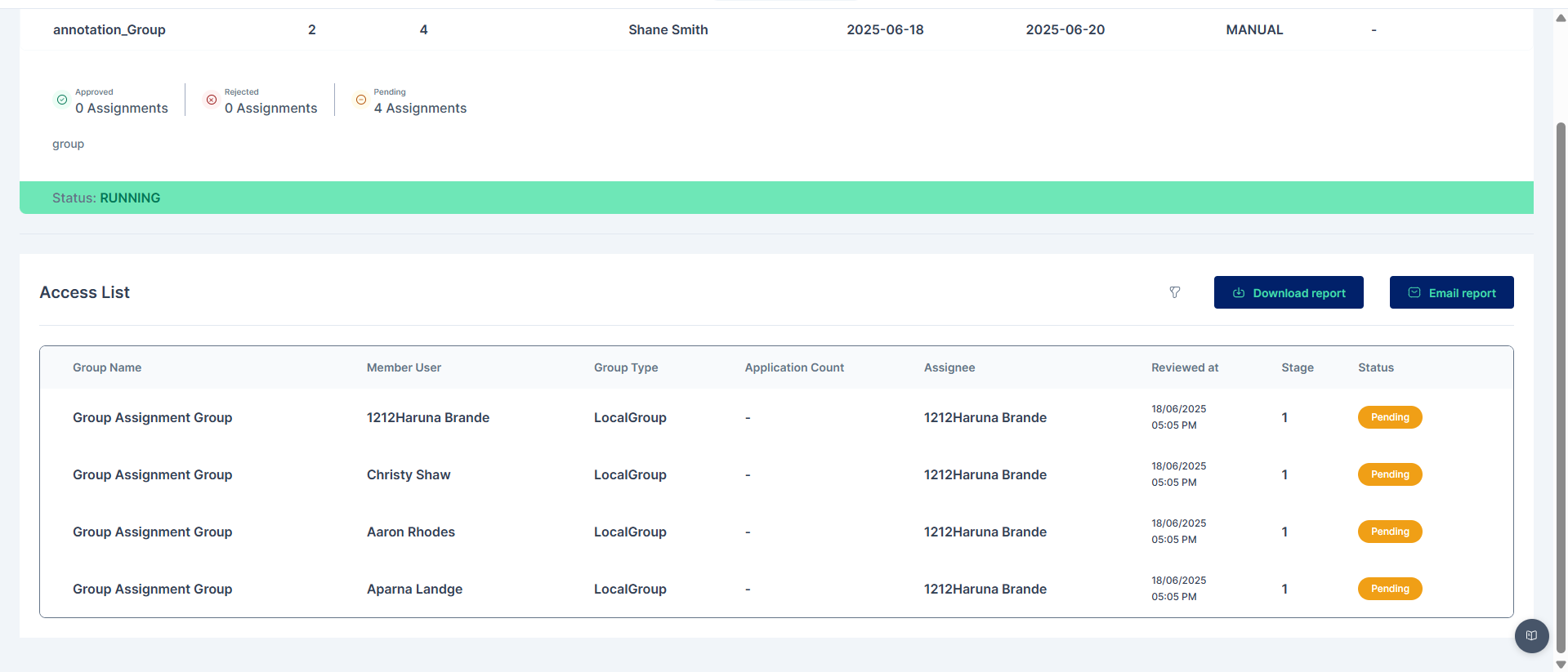 This enhancement introduces the Group Review capability within the access review system. This feature provides administrators with a more flexible and targeted approach to initiating access reviews.