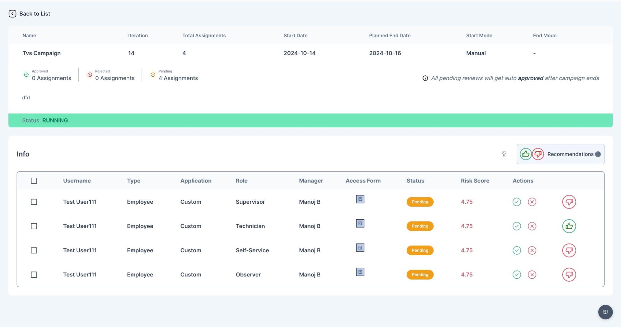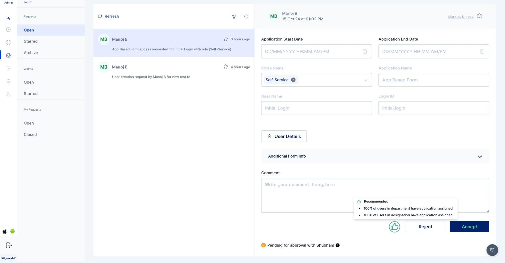 **Workflow Approver View**: It is the interface where approvers can review, approve, or reject access requests that have triggered segregation-of-duties violations, ensuring proper compliance before access is granted.
