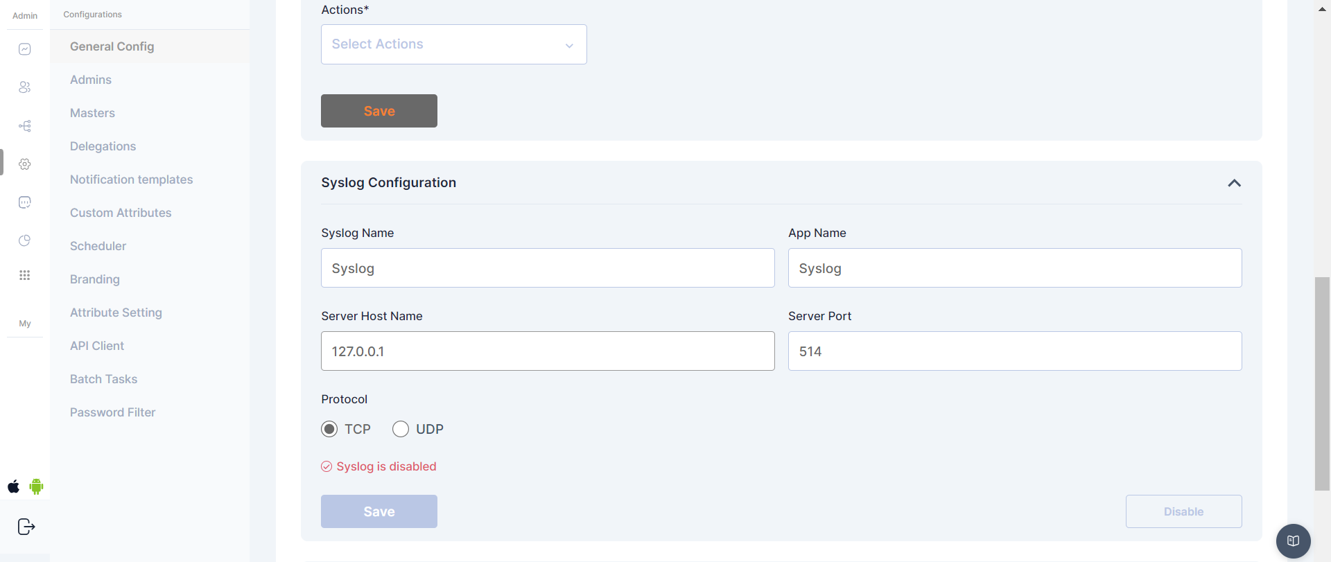 #### **Syslog Configuration**