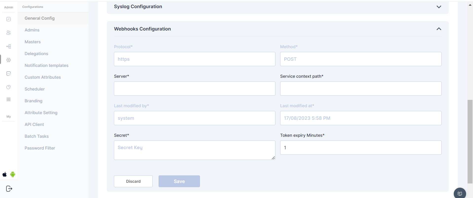 #### **Webhooks Configuration**