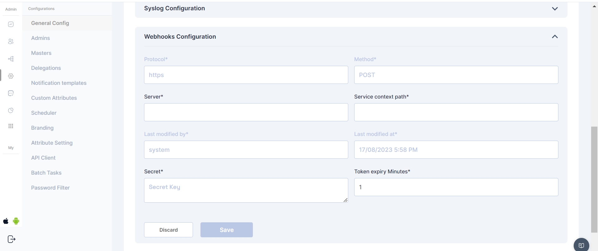 Webhooks in the Cymmetri's admin module provide a powerful mechanism for real-time communication and integration with external applications or services. Administrators can configure various webhook settings to enhance the system's functionality and streamline interactions with external components.
