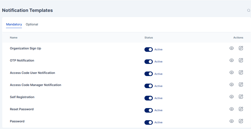 | **Access Code Manager Notification** | Triggers when forgot password option used and user does not have email configured | It contains the MFA OTP for the user to enter and reset the forgotten password                       | User's Manager                                                           |