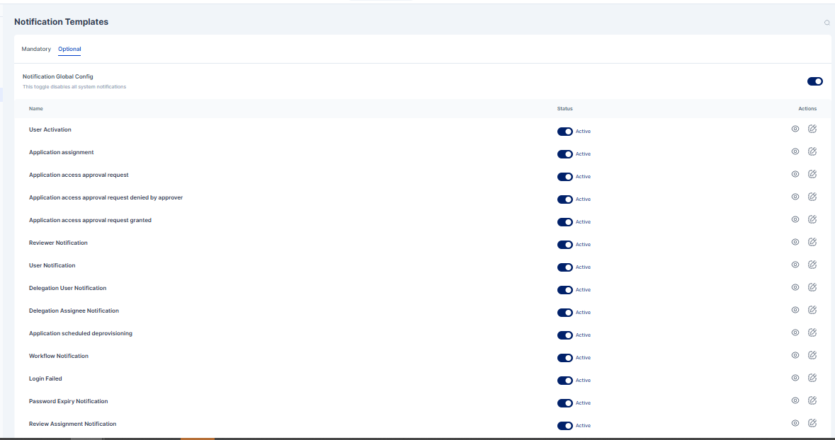 | Review Assignment Notification                             | <p>When the campaign approver has pending tasks.<br>This is triggered from under the Campaign namely, Pending notification waiting period.</p> | The user has pending campaign assignments that require a review before the specified end date. This notice provides the campaign details and current stage to ensure the required actions are completed on time.                                                                                        | Sent to the reviewer at the start of the campaign.                                                     |