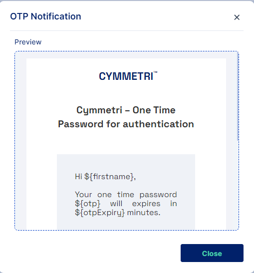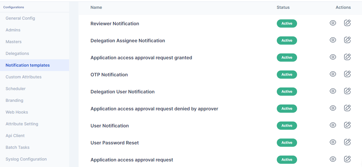 Notifications are triggered from the Cymmetri platform for various actions occurring on the platform either through direct action by the end-user or by the virtue of some backend action (such as running of a scheduler for a campaign). Cymmetri platform ships with default notification templates listed below-
