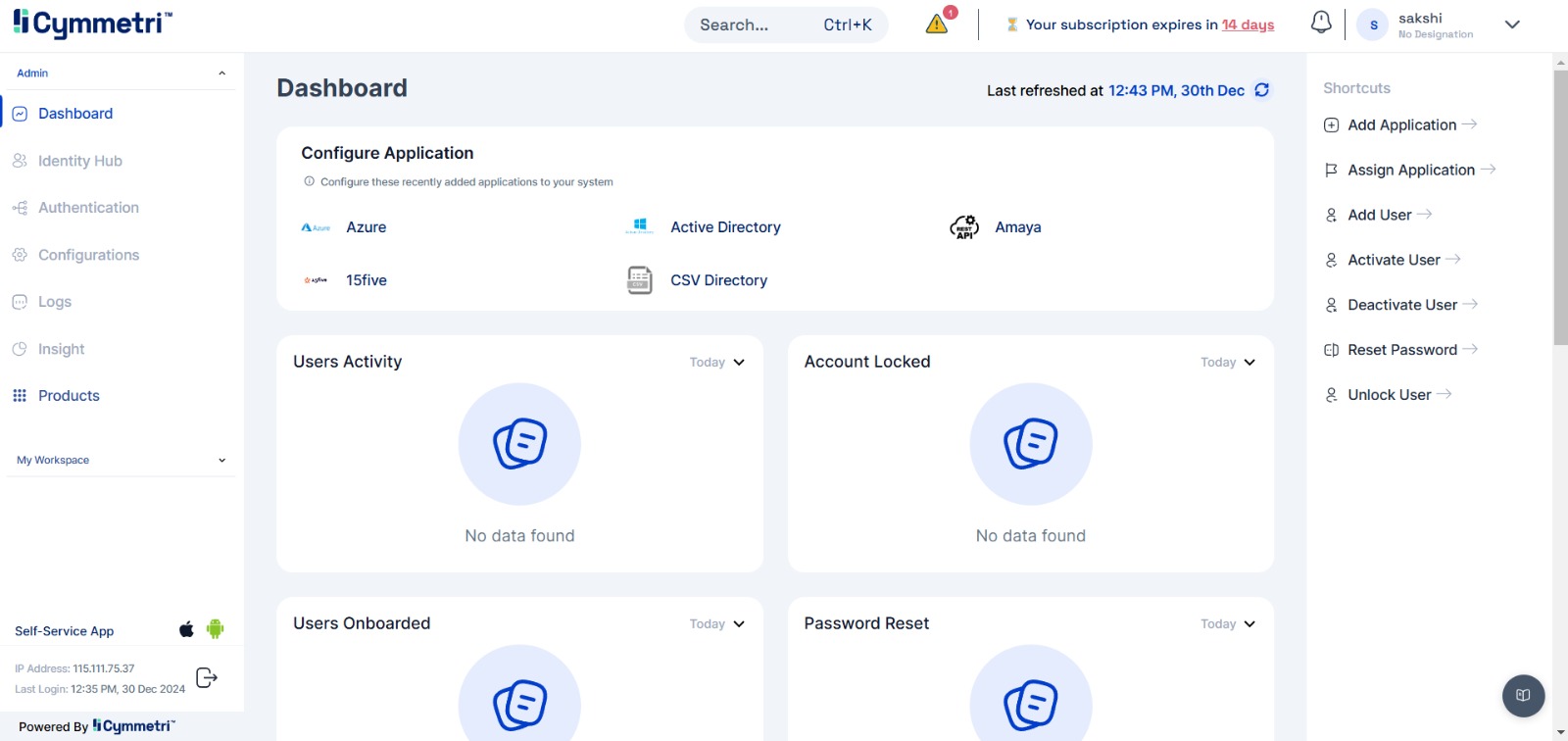 4. [Check out your workspace. ](https://help.cymmetri.io/my-workspace/how-to-use-the-my-workspace/dashboard)