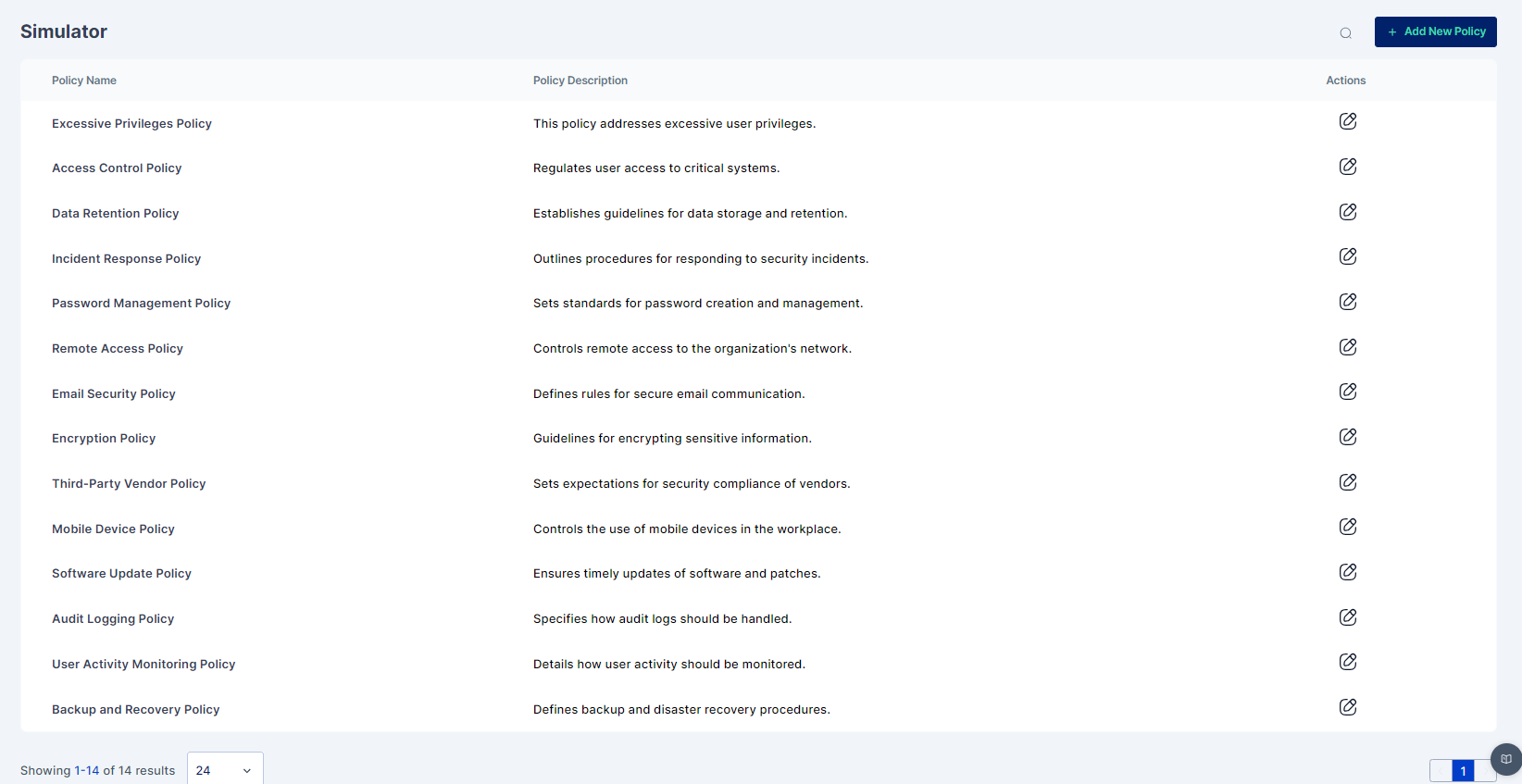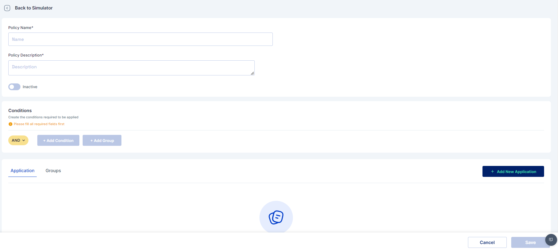 Access the Policy Simulator Navigate to the Policy Simulation section and click on Create New Policy.