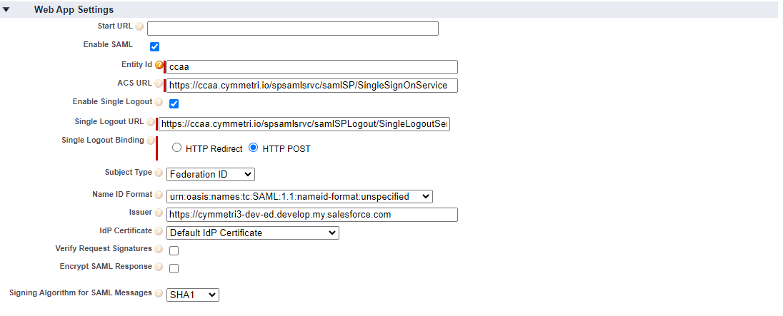 * **Logout Protocol Binding:** HTTP Post (can also be set to HTTP Redirect if it is set so in Salesforce)