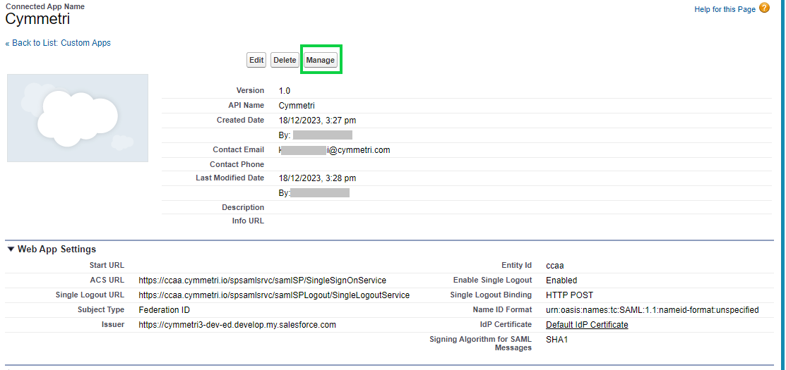 * **Connected App Name:** App Name *(Cymmetri in this case)*