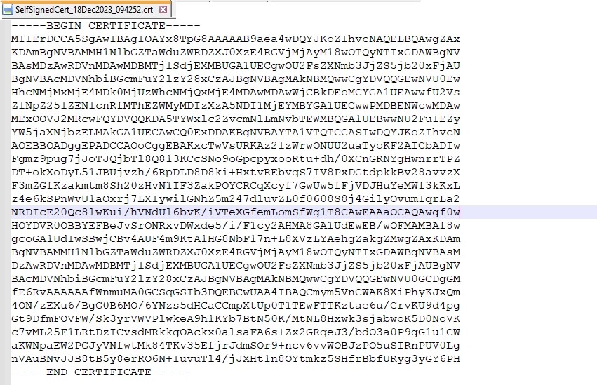 The certificate file appears as below this is also needed when configuring the External IDP in Cymmetri.