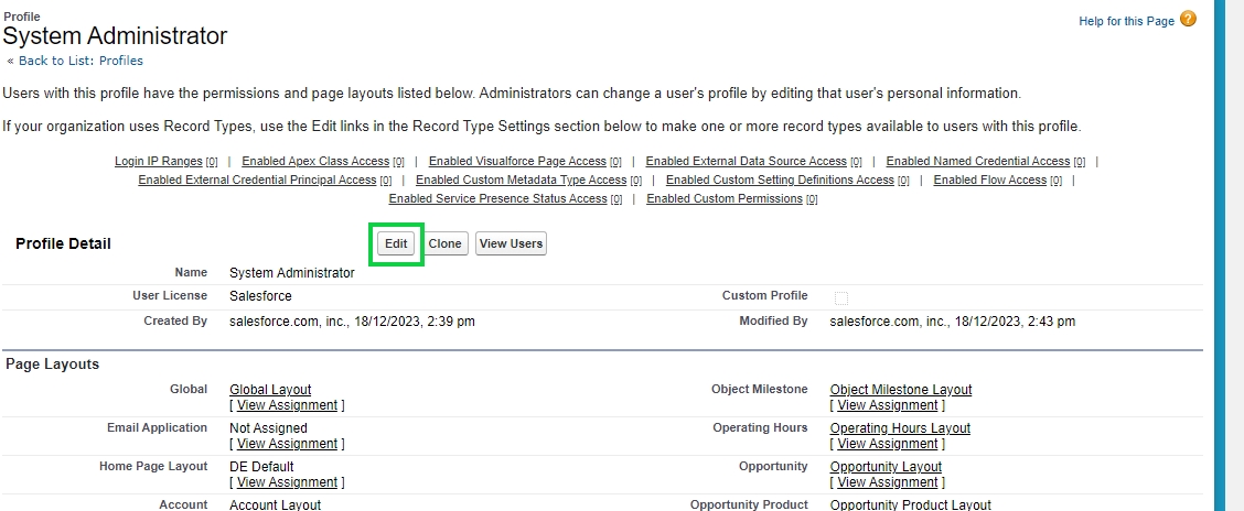 Once the profile is selected click on the Edit button and look for the Connected App Access section.