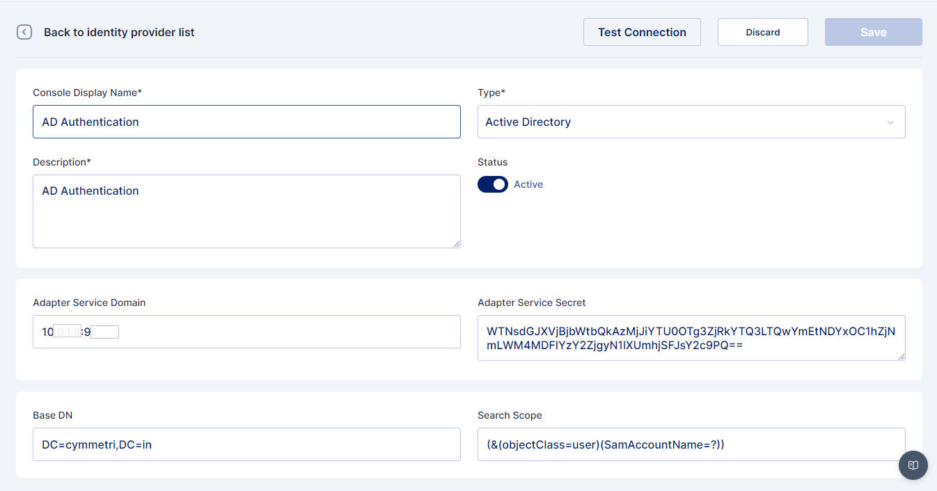 * **IDP Type**: Active Directory