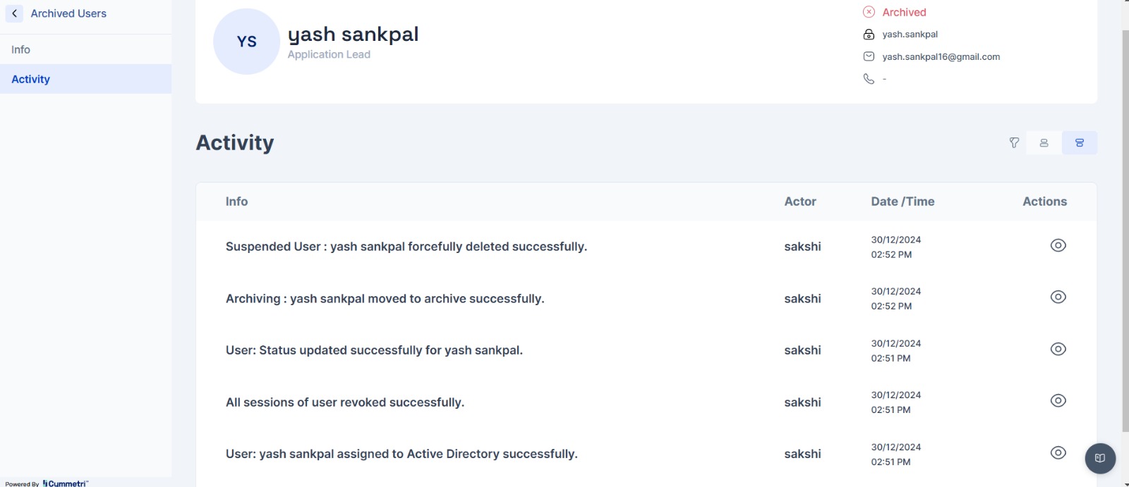 This section stores and manages user accounts that have been archived or deactivated. These accounts are usually no longer active but are retained for historical or compliance purposes.
