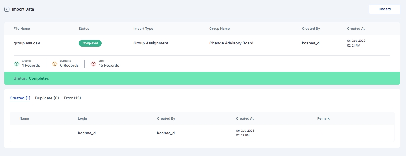 Results of successfully Imported Users, Duplicate Users, or any error that occurred during import can be seen in the Logs > Import History page