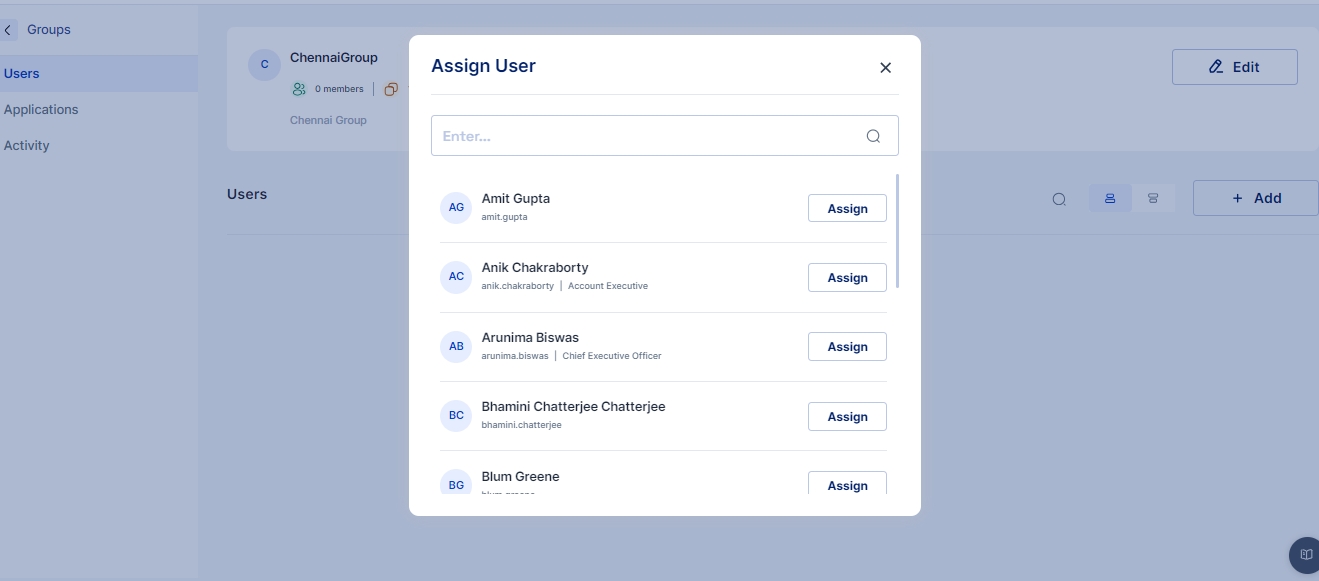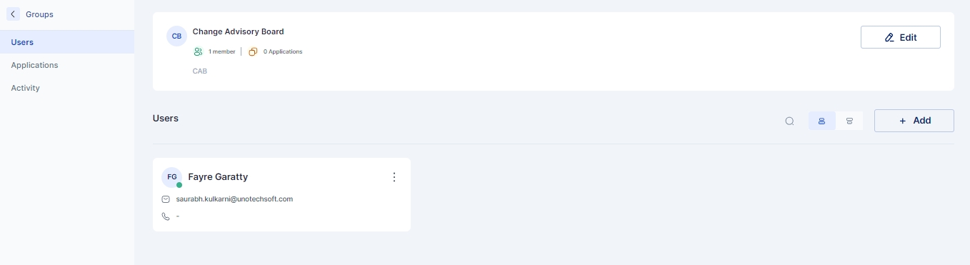 Users once created in the Cymmetri platform can be assigned to a group. Assigning users to a group helps ease the administrative efforts to apply the same policies and assign applications to multiple users.