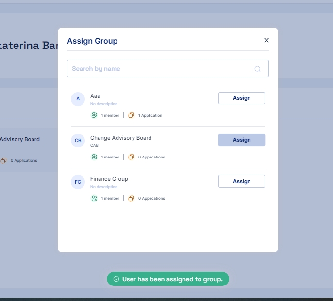 Click on the assign button and the group is assigned to the user or you may say the user becomes a part of the group