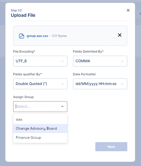 Once the file is selected and uploaded, next you need to select the group to which you want to assign the users.