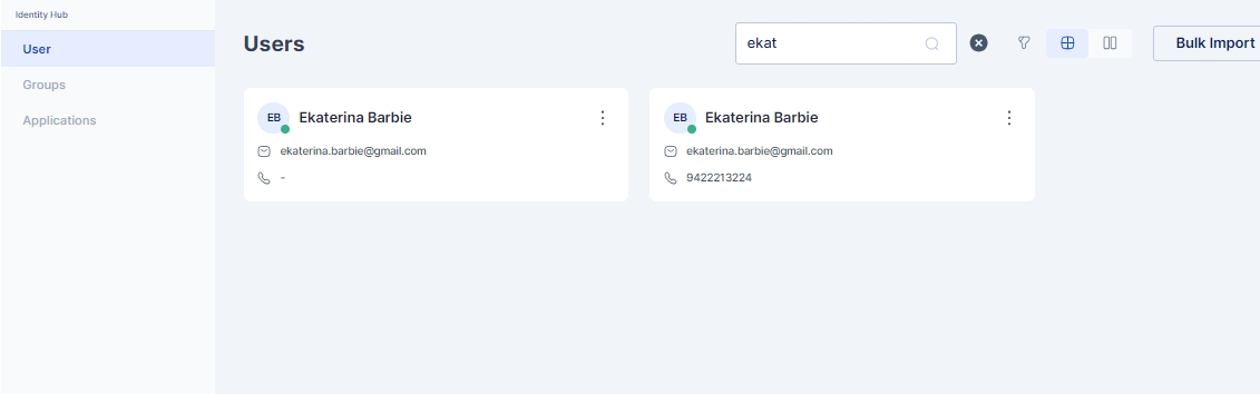 For this approach, the Administrator needs to go to Identity Hub > User page and then select the user from the list to whom the group needs to be assigned