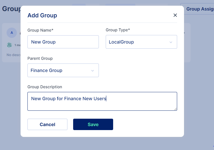 Parent Group: If a parent group is chosen, all the policies and rules applicable to the parent group will be assigned to this new group, in addition to the policies and rules specifically applied to this new group.