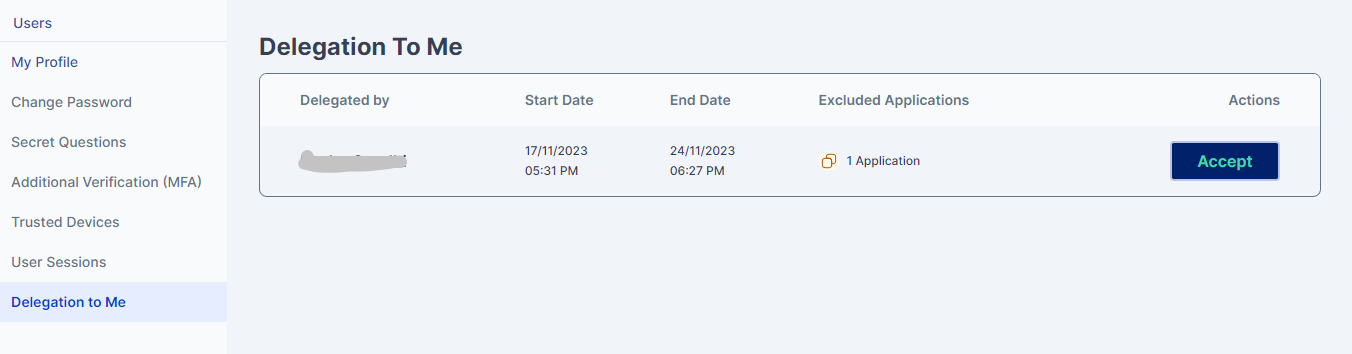 The delegatee can access and perform actions on all the applications assigned to them and if any application is excluded during delegation they are not visible to the delegatee.