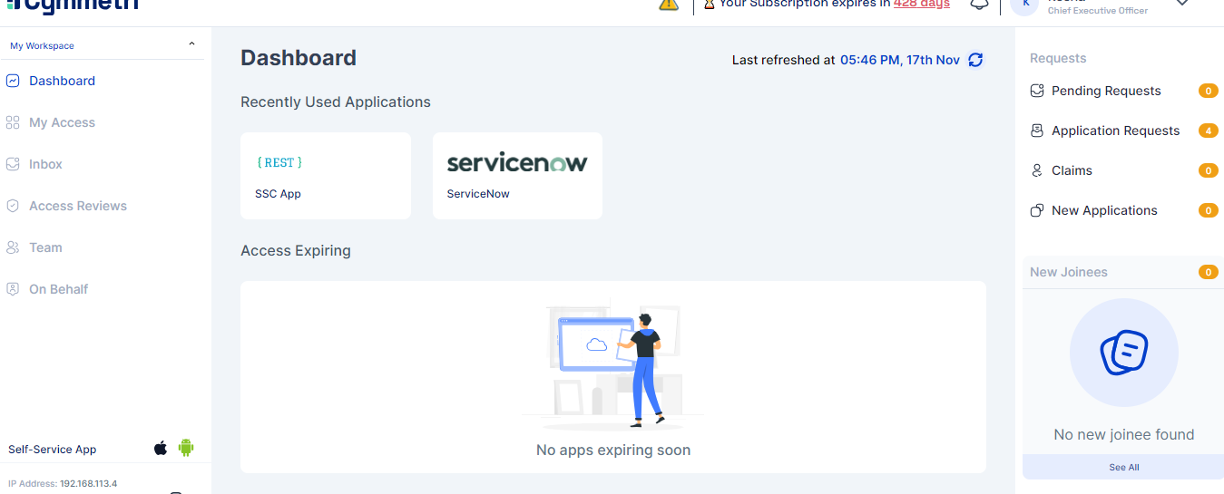 On clicking the login button the delegatee is redirected to the delegator's My Workspace Dashboard.
