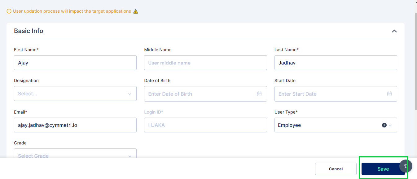 Saving the changes may also trigger updates in target applications, depending on the configuration. This ensures that any modifications made are synchronized across all relevant systems.