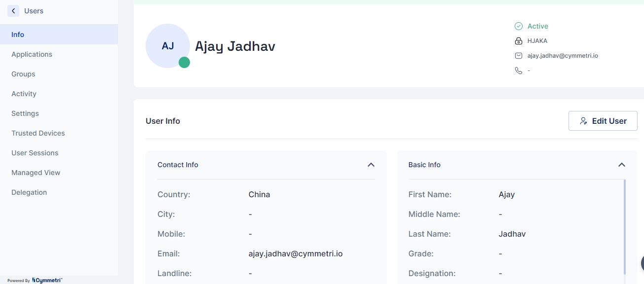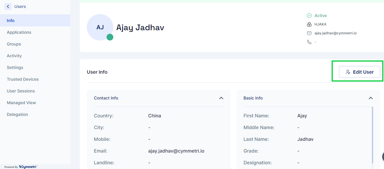 Navigate to Identity Hub -> Users, select the specific user you wish to edit, then go to the User Info page and click on Edit User