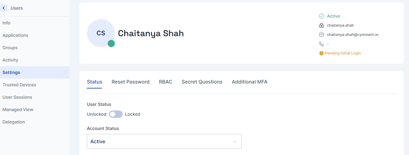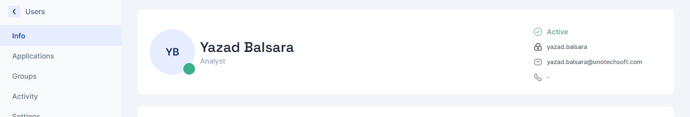 Right next to the profile picture, users can find the current status of the user, which indicates whether the user is Active, Inactive, or Pending. This status helps in quickly understanding the user's engagement level.