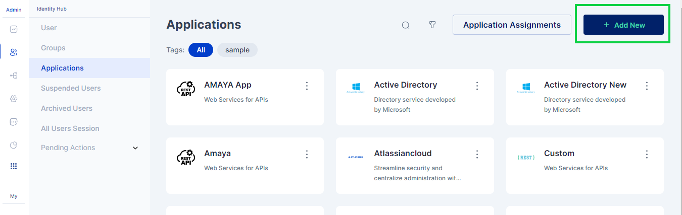 1. Click on the “Add New” button on the top-right corner in the Applications page.