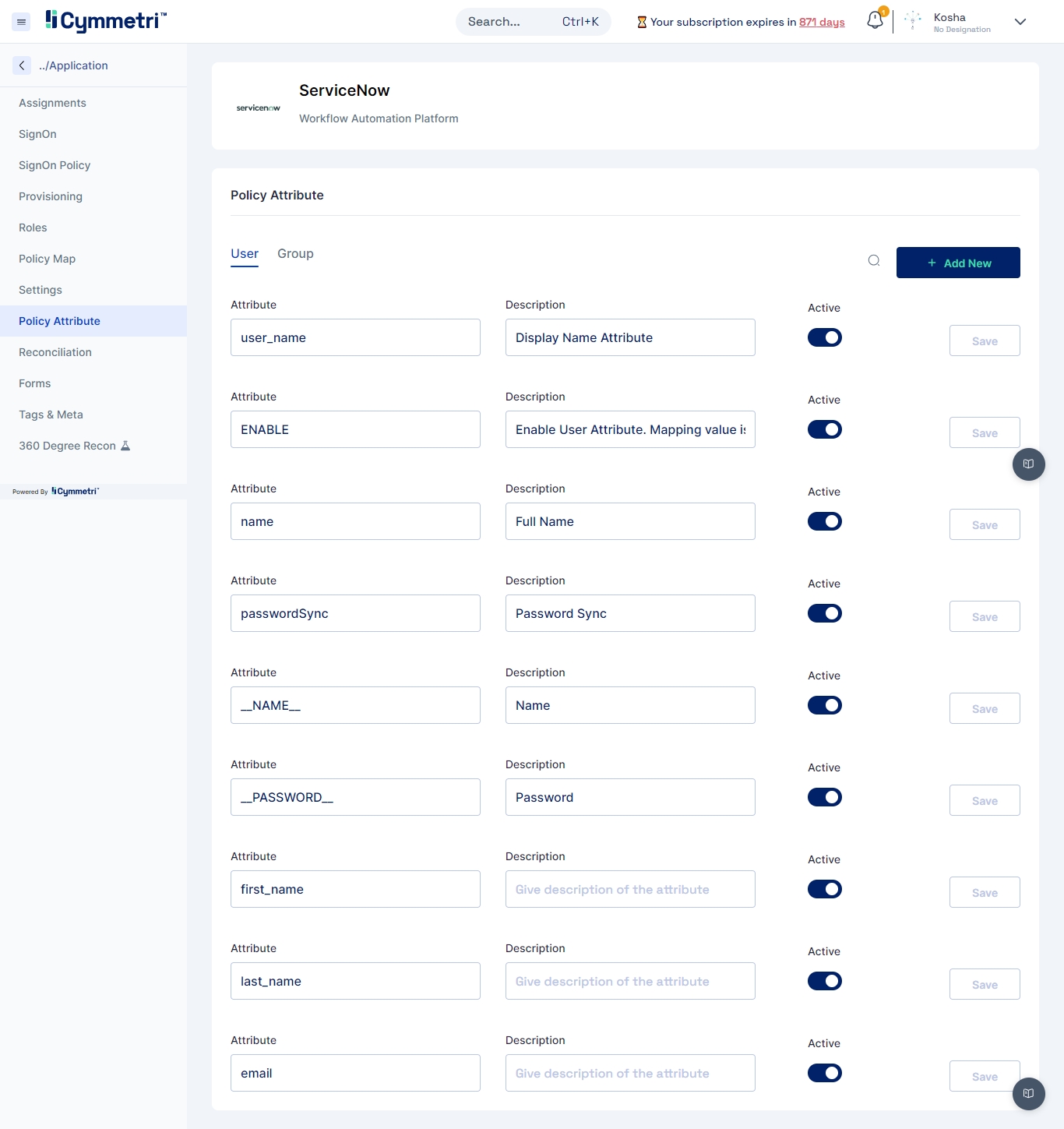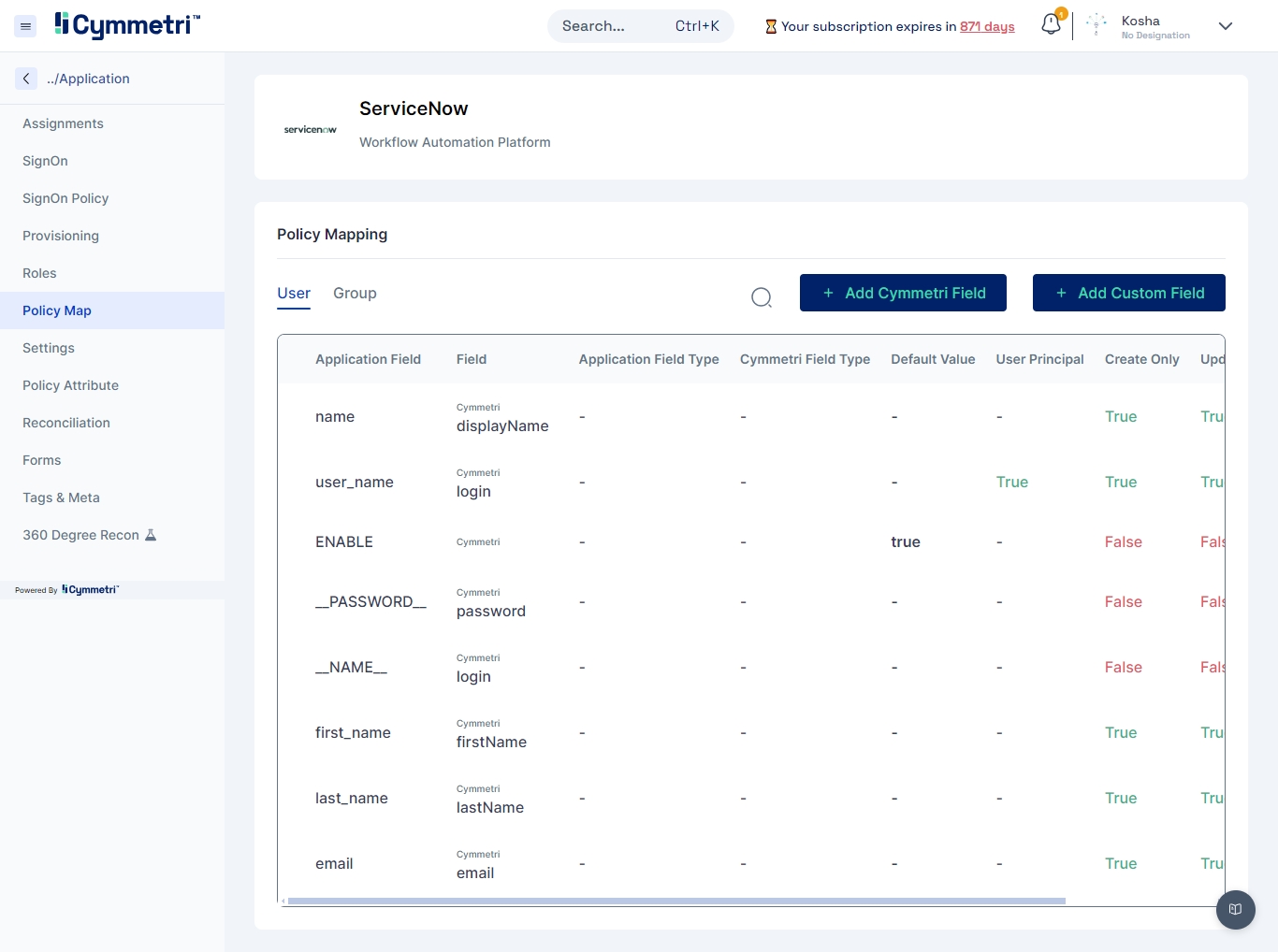 Configure mapping between the provisioning source application and Cymmetri user fields.