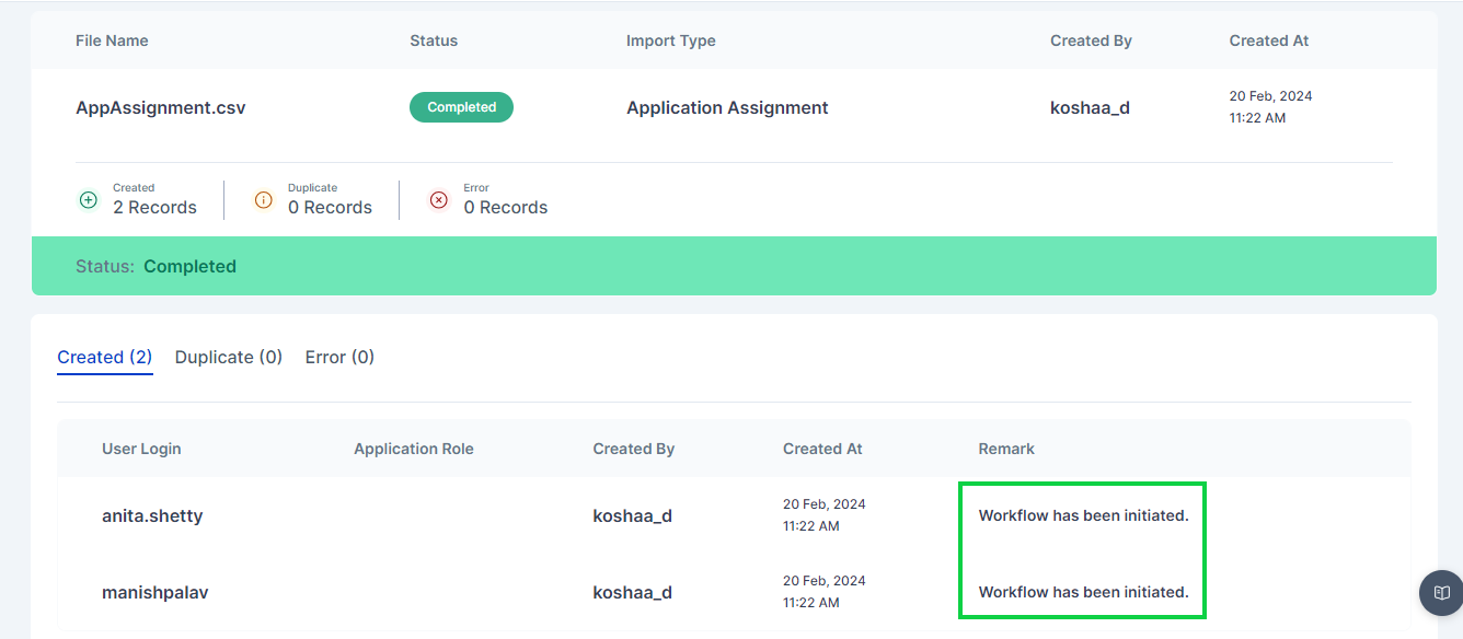 Once Imported results of successfully Imported Users, Duplicate Users or any error that occurred during import can be see in Logs > Import History page