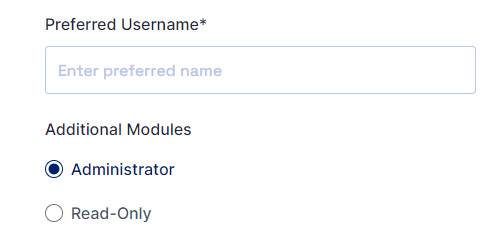 “Request Additional Modules” [Radio] with two options “Administrator” and “Read Only”.