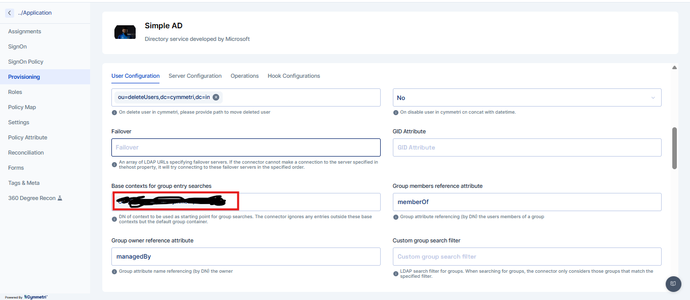 * User Entry Searches & Base Contexts: Define the LDAP search queries and organizational units (OUs) that Cymmetri will use to find users and groups within AD.